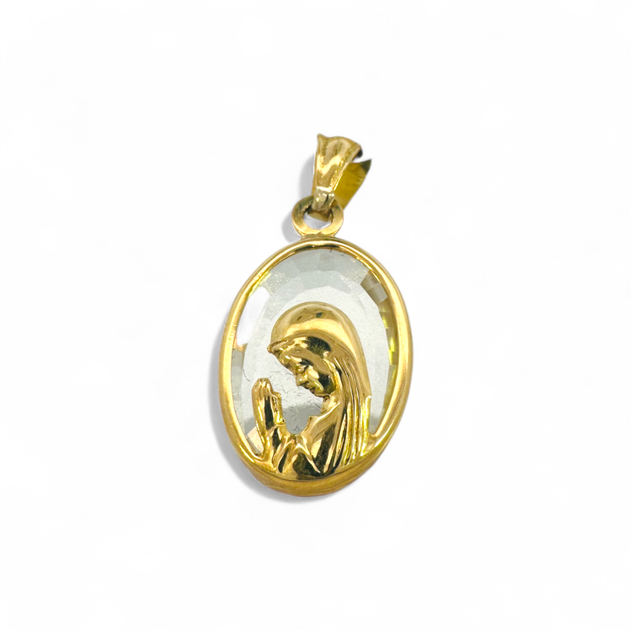 Medalla Virgen Orando Oval Cristal Oro 18K 17 mm