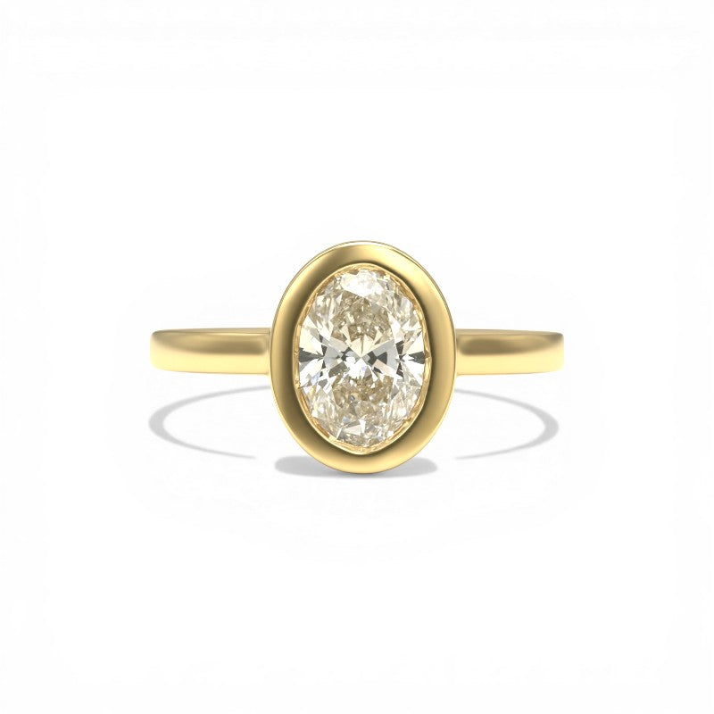 Anillo Solitario Diamante Lab Oval Bisel Halo Oro 18K