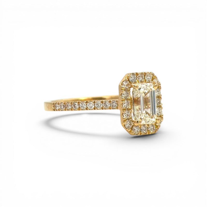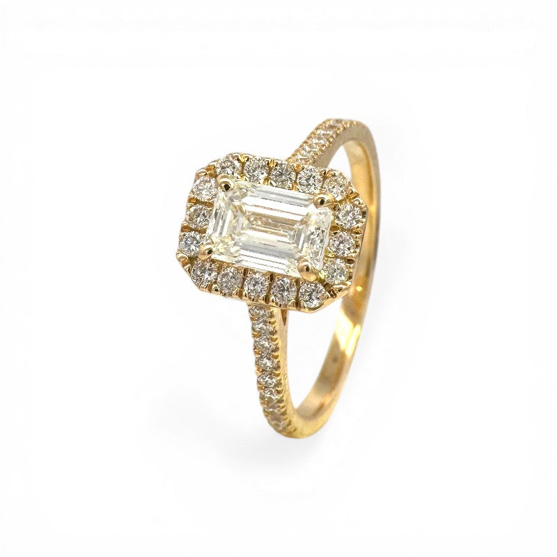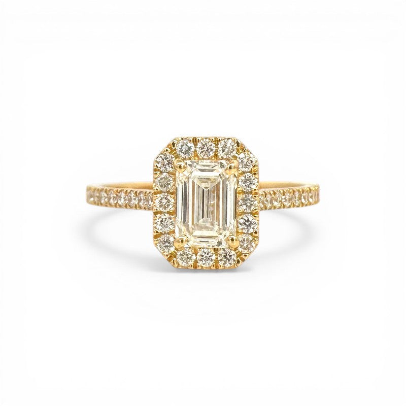 Anillo Solitario Diamante Lab Halo Emerald Cut Oro 18K
