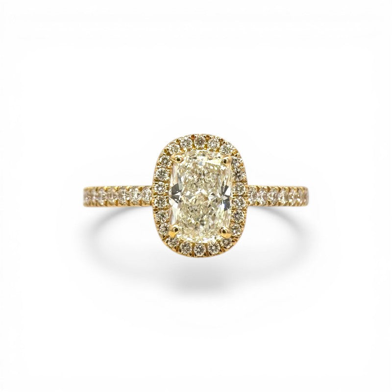Anillo Cintillo Diamantes Halo de Brillantes Amarillo 18K
