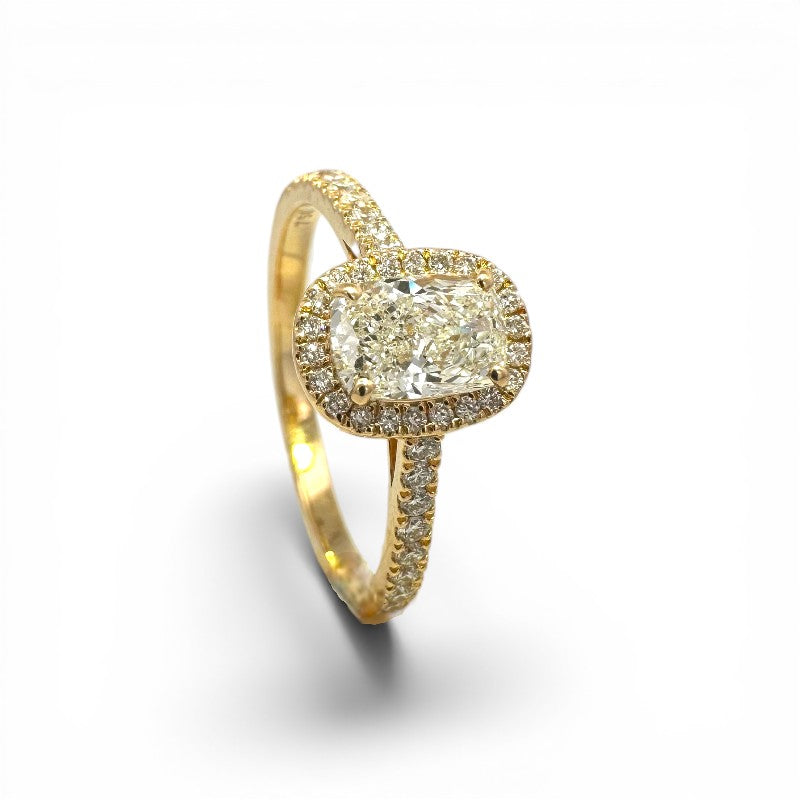 Anillo Solitario Diamante Lab Oval Cushion Halo Oro 18K