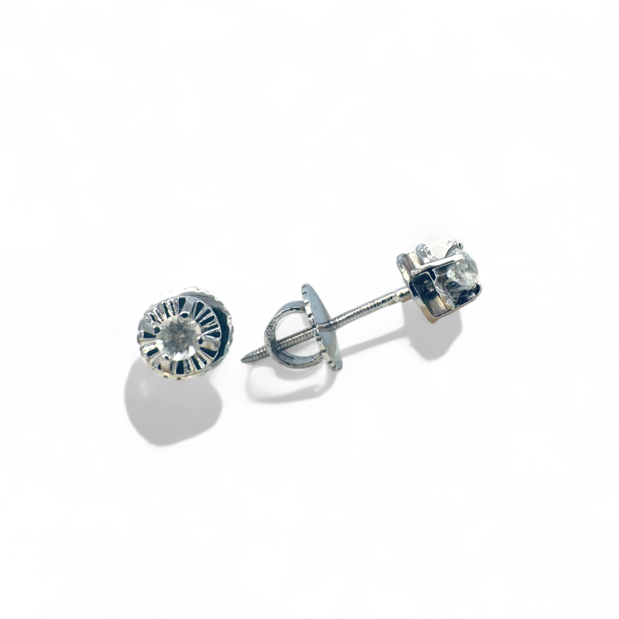 Aros Flor con Brillantes atornillados Oro blanco 10K