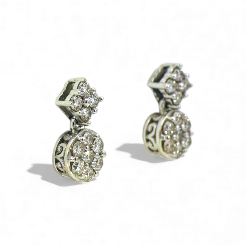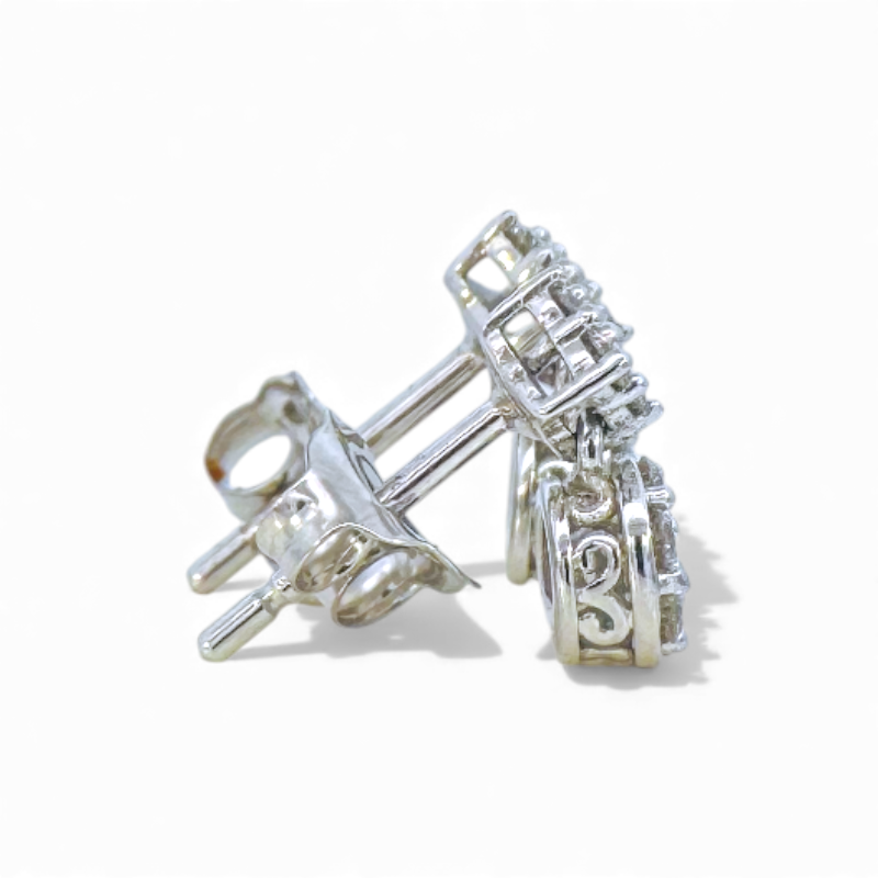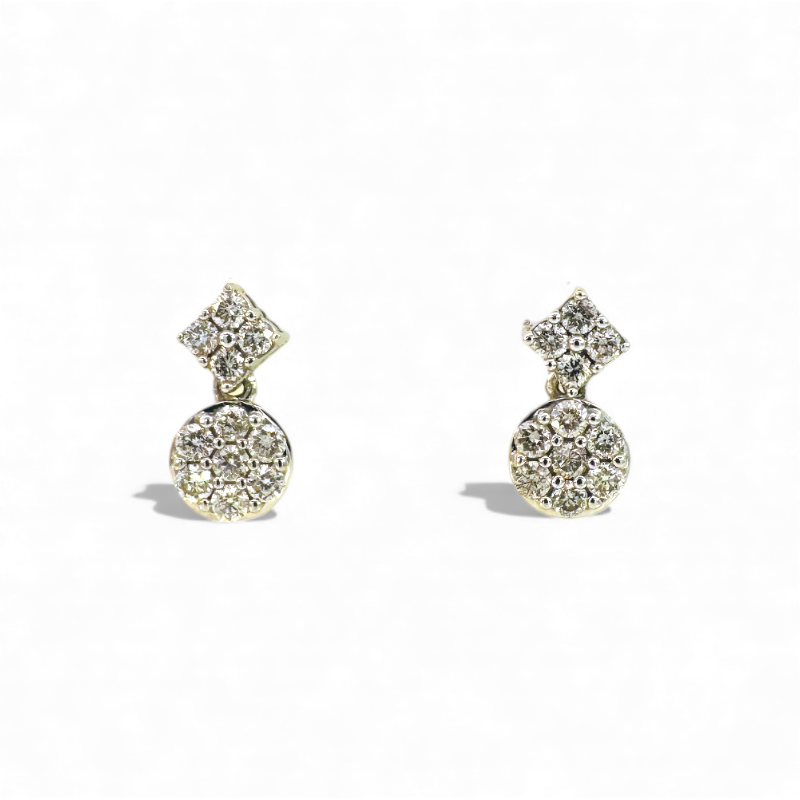 Aros stud brillantes en pavé rombo y circulo en movimiento oro blanco 10K