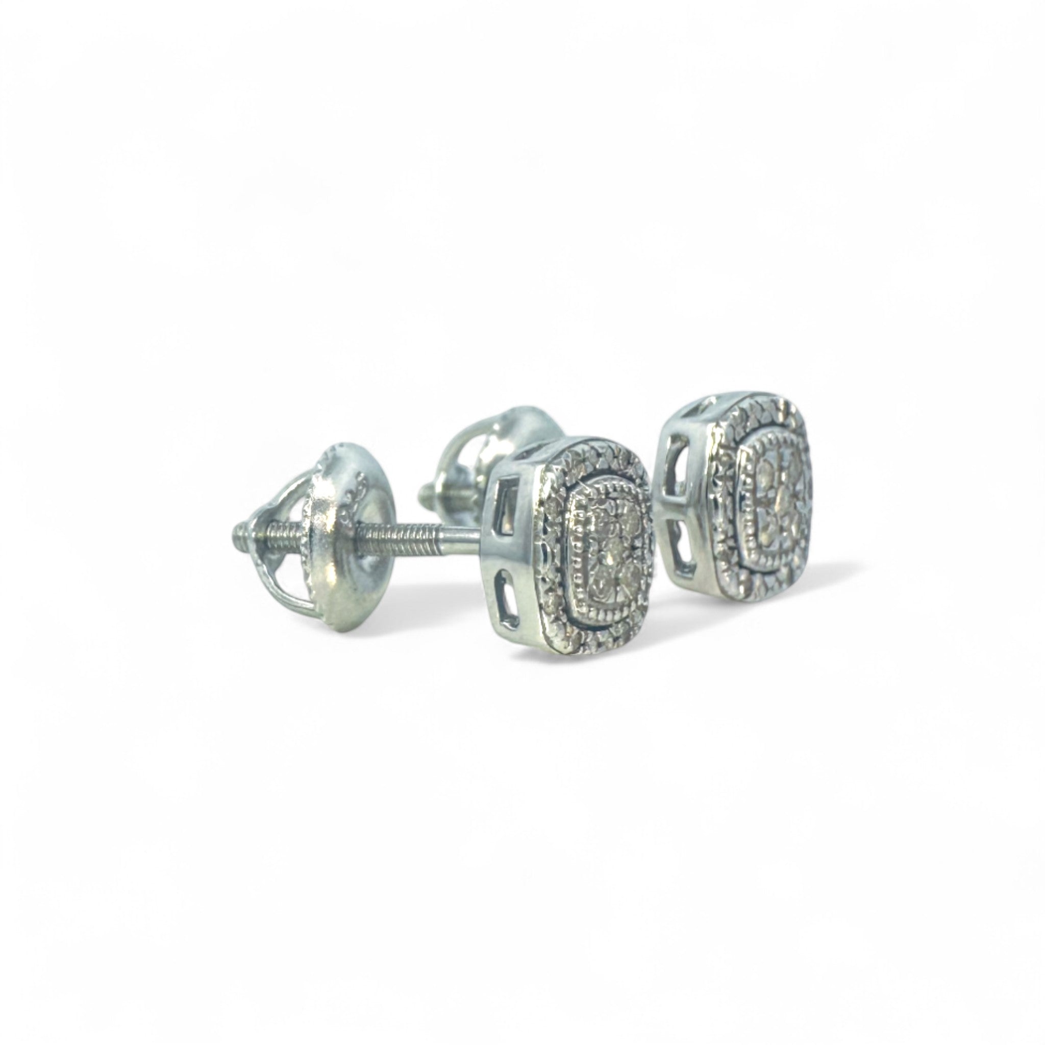 Aros stud cuadrados 7 mm con halo diamantes plata