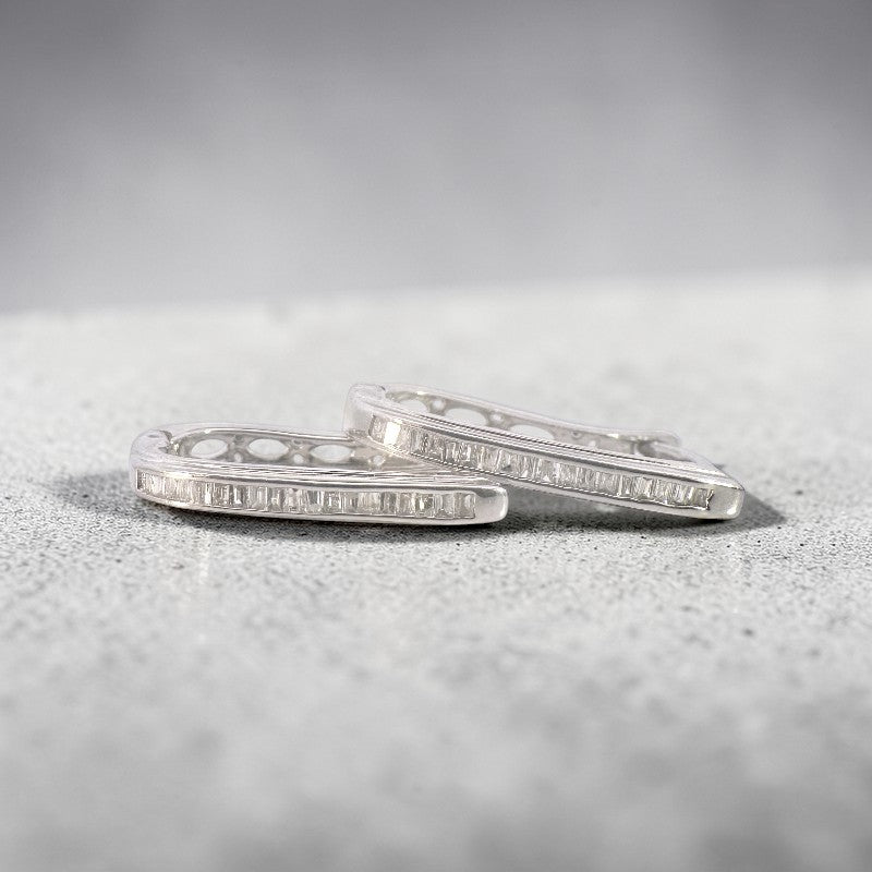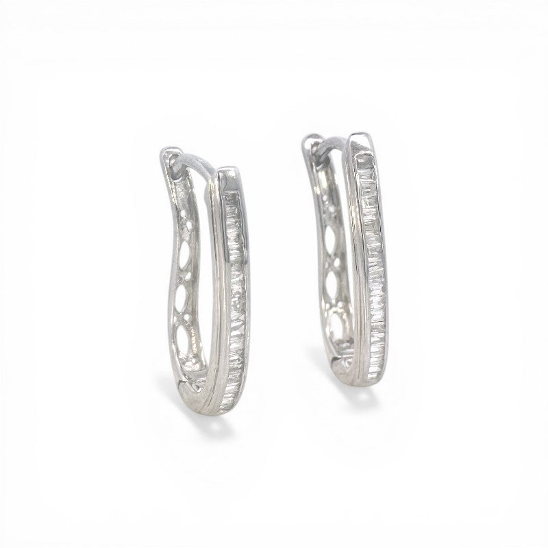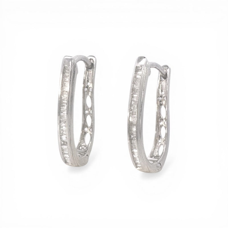 Aros argollas ovales curvas diamantes baguette en riel 0,25 ct plata 925