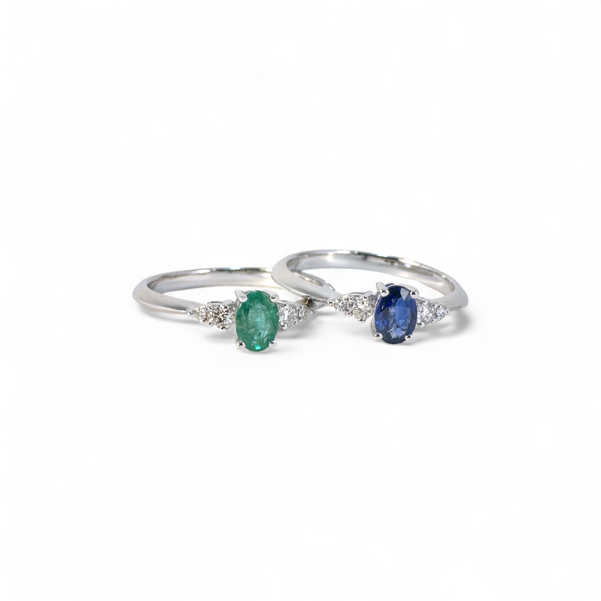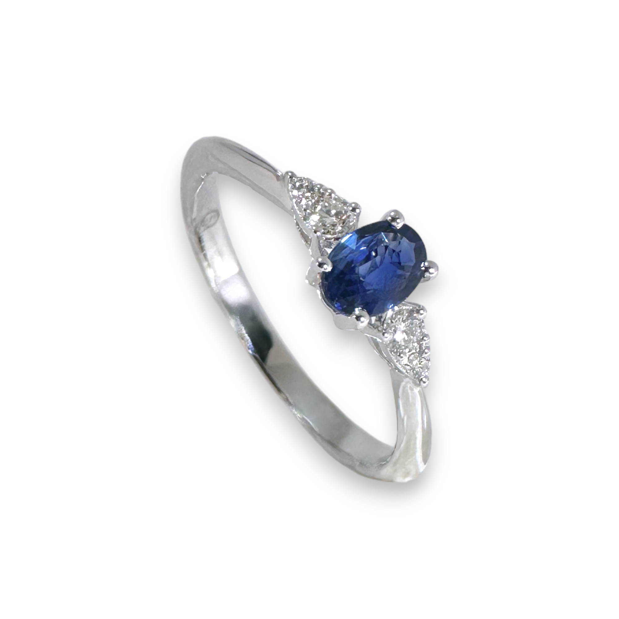 Anillo Solitario Zafiro Oval y trio brillantes Oro 18K